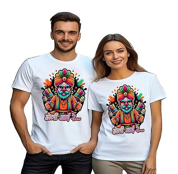 Crafted with soft, breathable fabric, these shirts ensure you stay cool and comfy while having fun during the Holi festivities. The bold, colorful "Crazy Holi Crew" design reflects the lively and joyous nature of this festival, making it the perfect duo set for couples who want to match in both style and spirit!